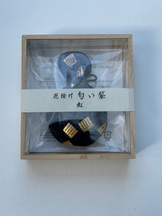 KOSAIDO Japanese incense - scented sachet to ward off evil spirits Niji box made of paulownia wood gourd shape